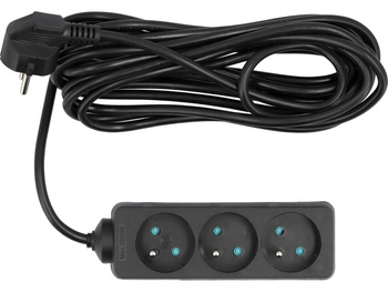 ( ilość produktów: 43 )PRZEDŁUŻACZ ELEKTRYCZNY, CZARNY, 3 GNIAZDA Z UZIEMIENIEM, 5M
